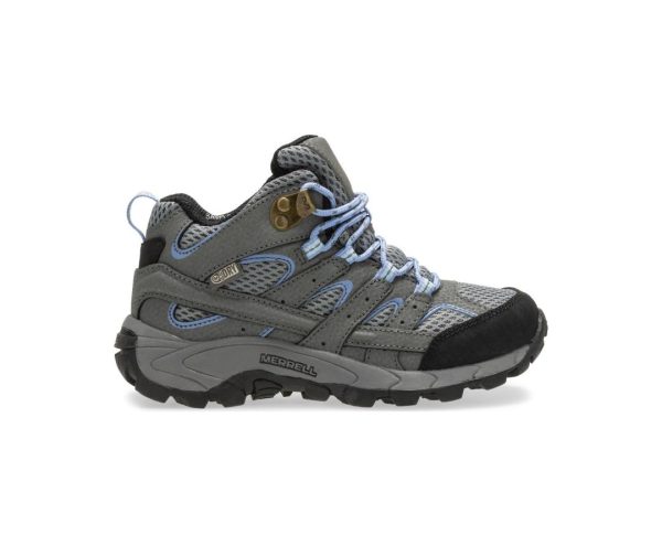 Merrell Kids Wide Widths | Big Kid’s Moab Mid Waterproof Boot Grey|Periwinkle